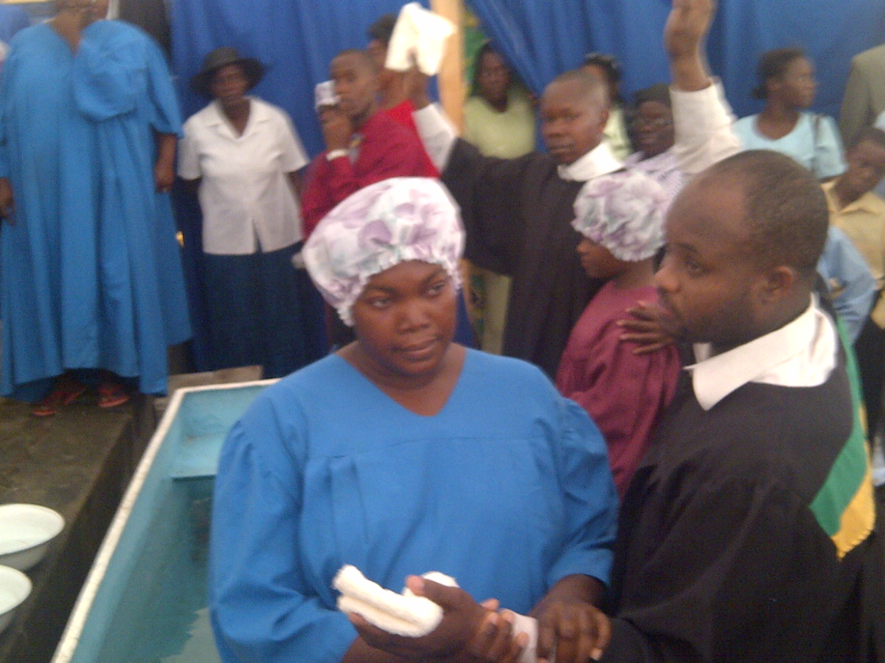 Sis Shim been baptised by Pastor Smith.